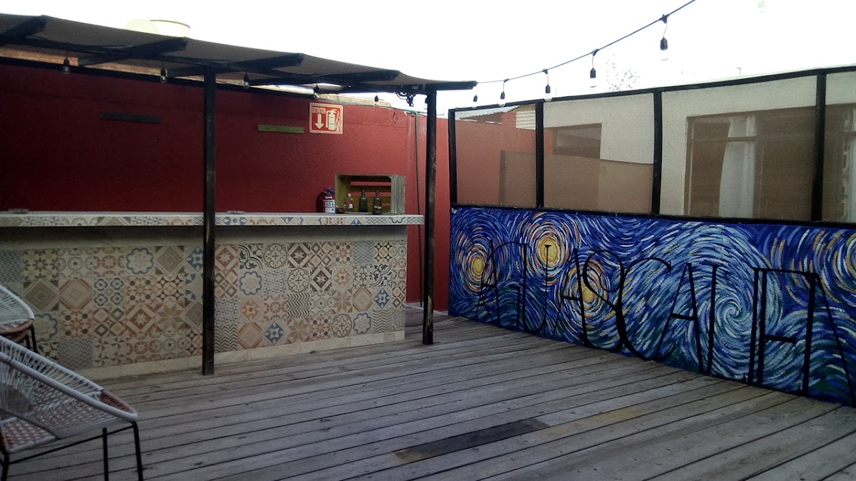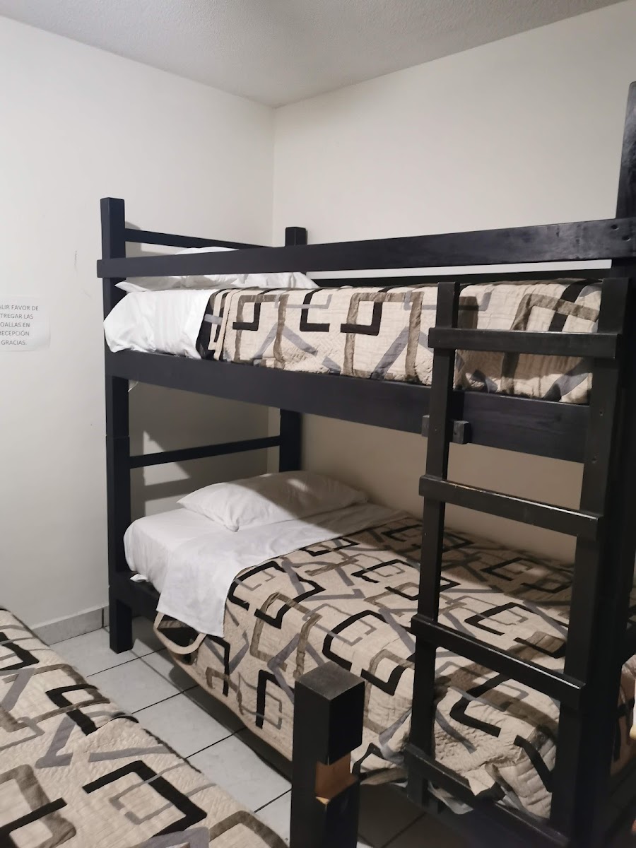 Great location, great price, great service. However, we found the room got stuffy when the door is closed for prolonged periods. There was a window that we could open, but it had no screen so we were worried about bugs coming in. Bathrooms are shared. There are shared kitchen, dining and lounge areas, including an outside sitting area. The location was fantastic - close to everything we wanted to see. The owner let us park our motorcycles in his restaurant next door, where they were safe for a couple of days. 200 pesos for a bed in a dorm, or 400 pesos for a couple in a private room.